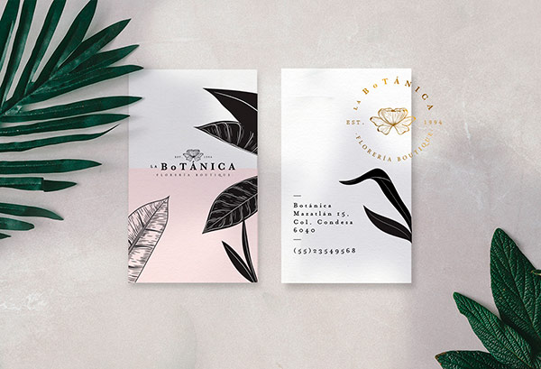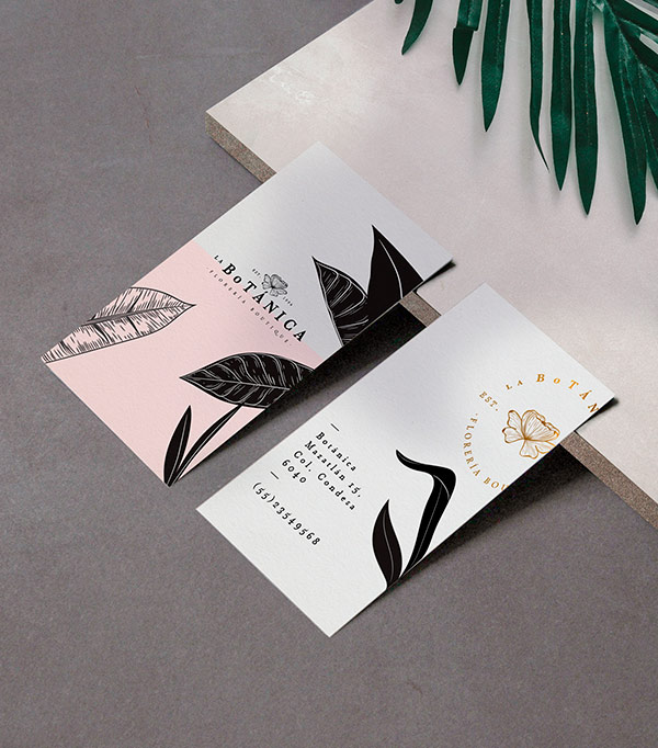 花店vi设计还是要以花为主要的设计方向,要体现简单大方。此款墨西哥城的花店vi设计正好体现了以上二个要求,它的LOGO以简单花朵为主,下面是英文的店名。名片设计更是体现了花店的品牌,用几片枝叶做了一下底部的衬托。